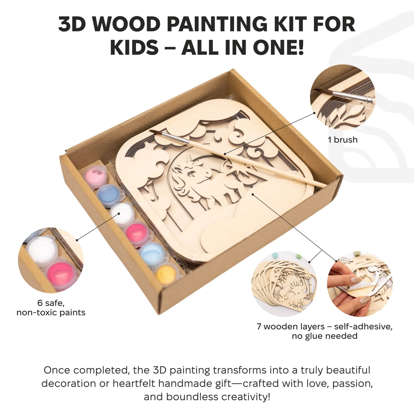 3D DIY Wood Painting Kit for Kids – Unicorn