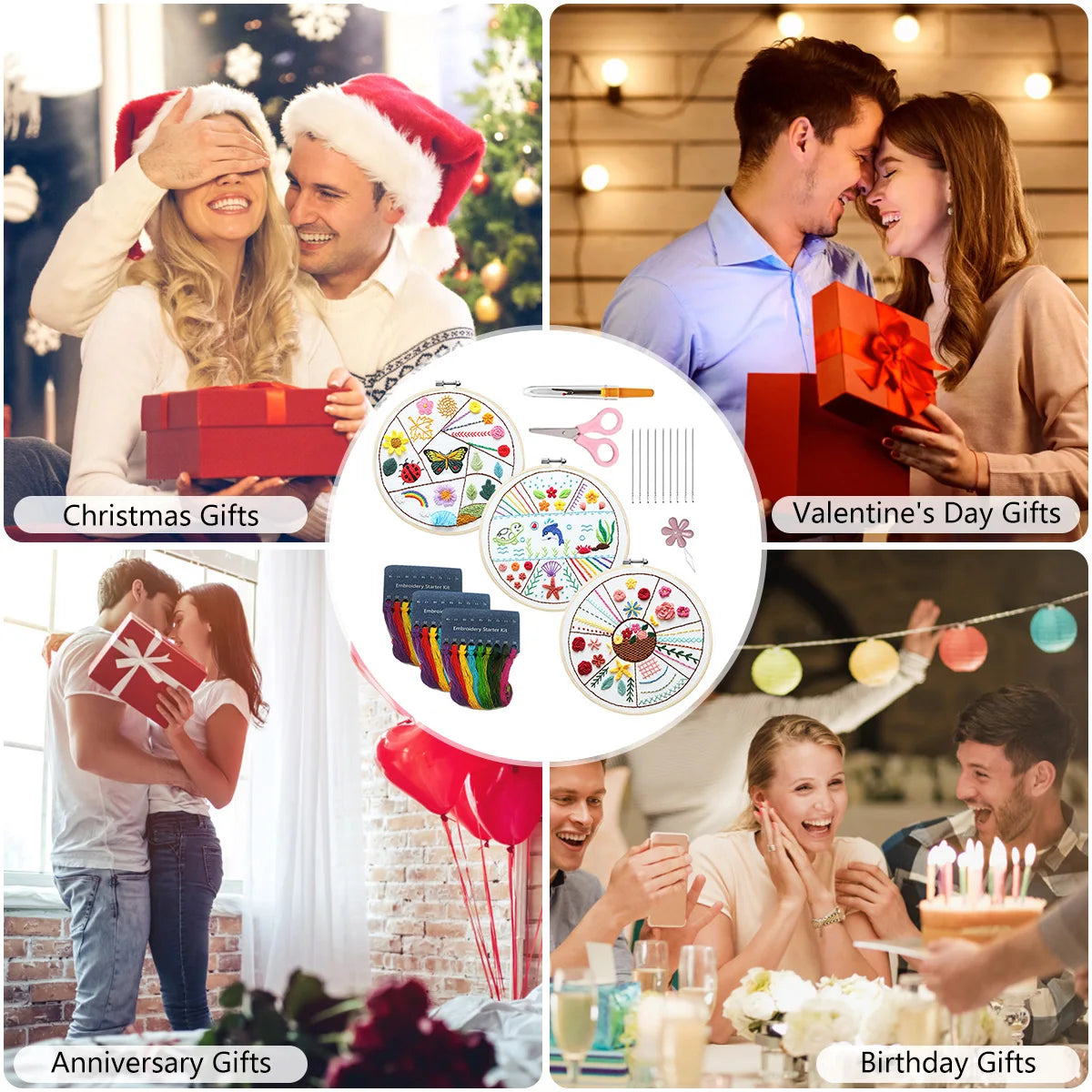 DIY Printed Embroidery Kit with Hoop - A / 2 Set / United States