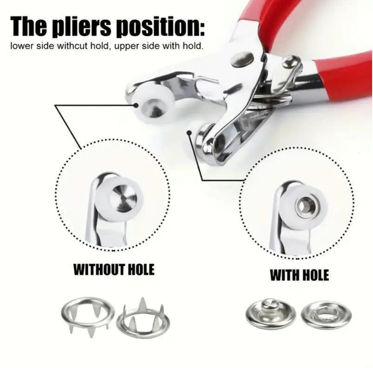 Complete DIY Kit – Includes 100pcs metal snap buttons and professional snap fastener pliers for effortless installation.
