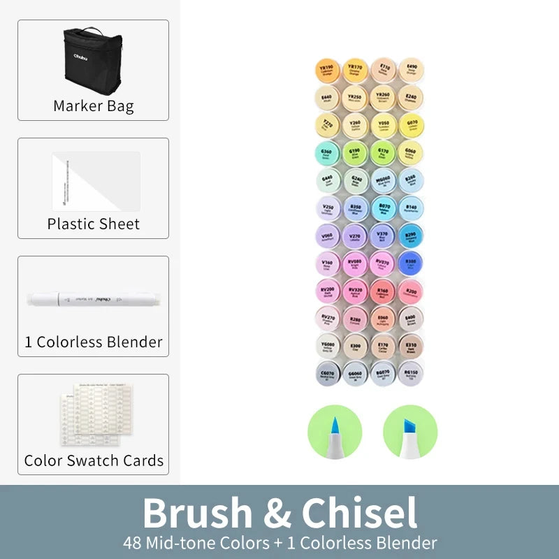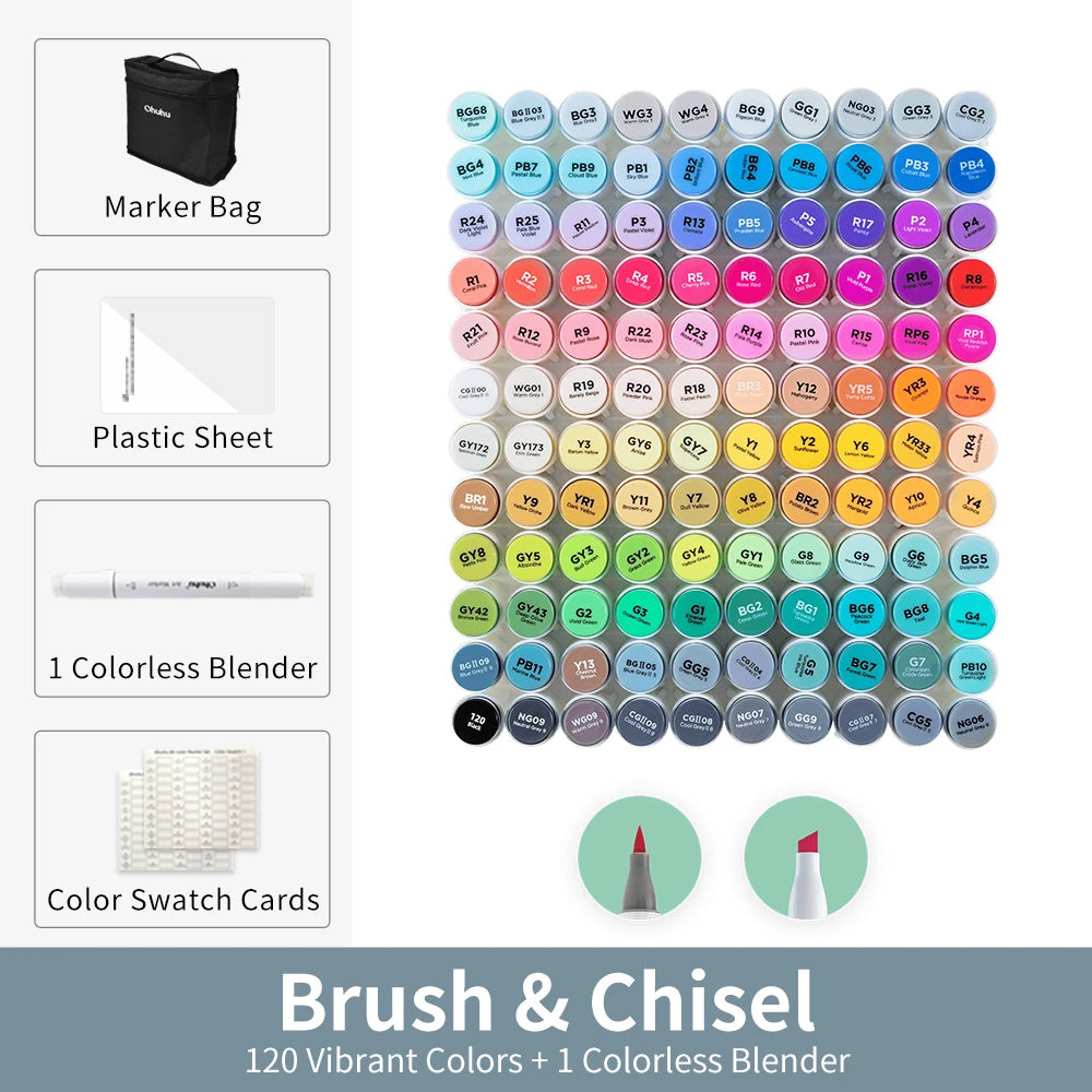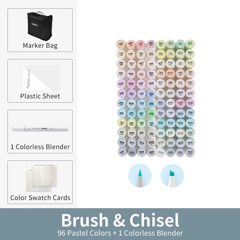 Set of vibrant, refillable alcohol-based markers for smooth coloring